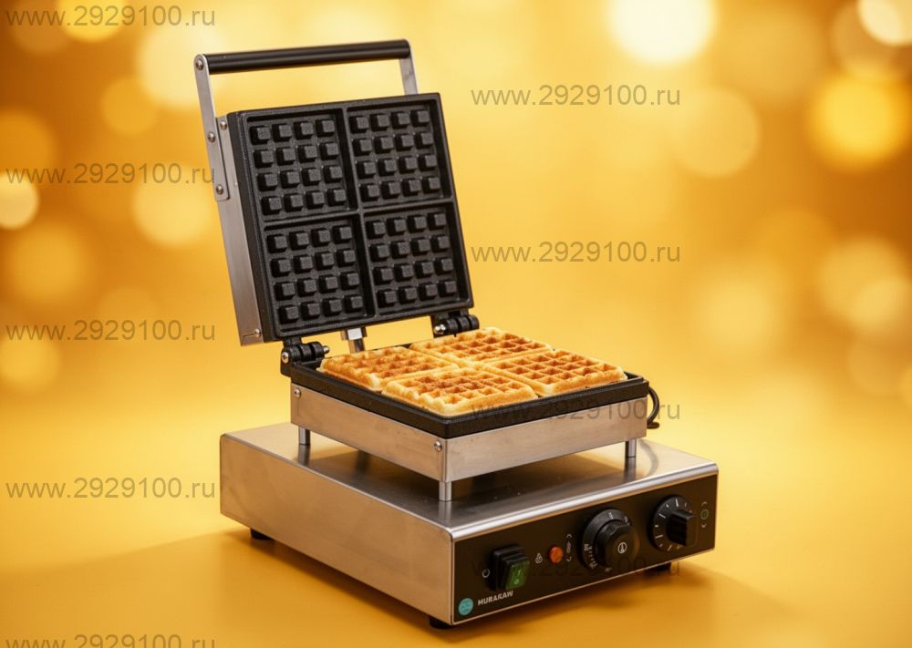 Описание Вафельница Hurakan HKN-GES2M для бельгийских вафельВафельница для приготовления квадратных бельгийских вафель на предприятиях общественного питания и торговли. - Количество рабочих секций: 1 - Количество сегментов для вафель: 4 - Тип вафель: квадратные, бельгийские - Размер вафли: 4×4 ячейки - Регулируемый термостат - Материал корпуса: нержавеющая сталь - Материал рабочей поверхности: чугун Страна производства: Китай Характеристики Вафельница Hurakan HKN-GES2M для бельгийских вафель