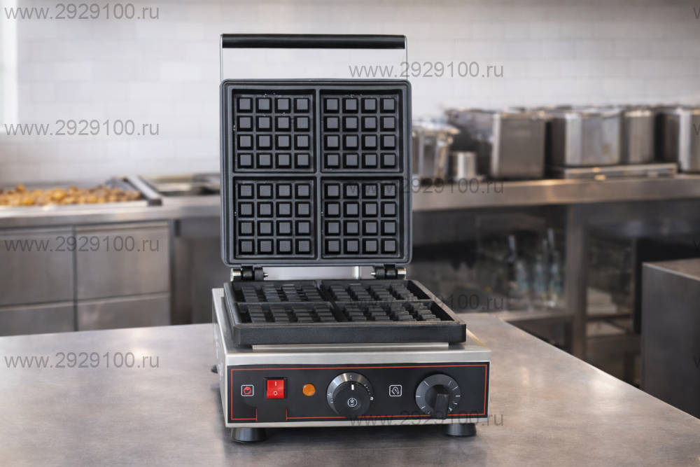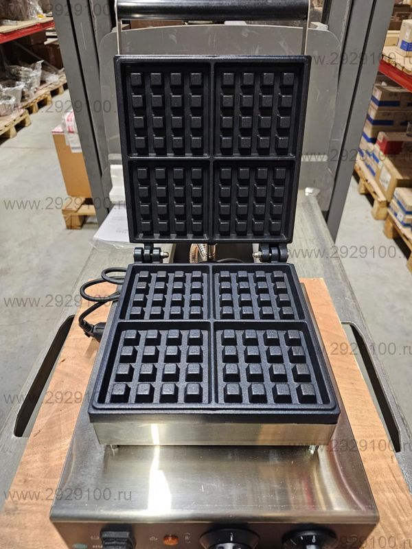 Профессиональная вафельница, хорошо подходит для приготовления квадратных бельгийских вафель при повышенной загрузке и поточной работе. Листайте фото товара. - Тип: вафельница для бельгийских вафель - Количество выпекаемых вафель за цикл: 4 шт. - Форма вафель: квадратные, ячейка 4×4 - Рабочая поверхность: чугун, равномерный нагрев - Корпус: нержавеющая сталь - Управление: регулируемый термостат - Назначение: выпечка бельгийских вафель для продажи и подачи - Страна производства: Китай Характеристики Вафельница Hurakan HKN-GES2M для бельгийских вафель
