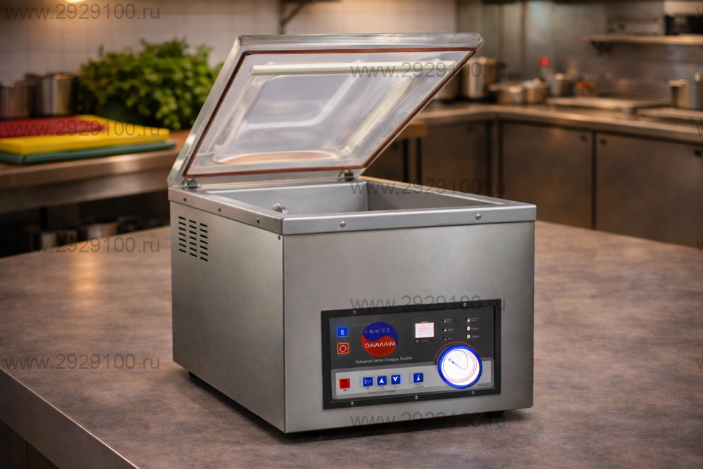 Описание Упаковщик вакуумный Indokor IVP-300/PJПрофессиональный настольный вакуумный упаковщик для герметичной упаковки пищевых и непищевых продуктов без газонаполнения. Подходит для упаковки продуктов, медикаментов, электроники и промышленных изделий, включая фольгированные пакеты. - Тип установки: настольный вакуумный упаковщик без газонаполнения - Назначение: пищевая продукция, медикаменты, электроника, промышленные товары - Длина запаечной планки: 300 мм - Ширина сварного шва: 8 мм (возможность маркировки датой и партией) - Производительность: 1–2 упаковки в минуту - Производительность вакуумного насоса: 10 м³/ч - Время запайки: 35–60 секунд - Размеры камеры: 370×320×185 мм (рабочая высота 135 мм) - Управление и контроль: вакуумметр, таймер, световые индикаторы - Материал корпуса и камеры: нержавеющая сталь - Безопасность: аварийная кнопка, защита от перегрева - Комплектация: силиконовый уплотнитель, запаечная и тефлоновая ленты, масло 0,5 л, набор символов для клише - Страна производства: Южная Корея Характеристики Упаковщик вакуумный Indokor IVP-300/PJ