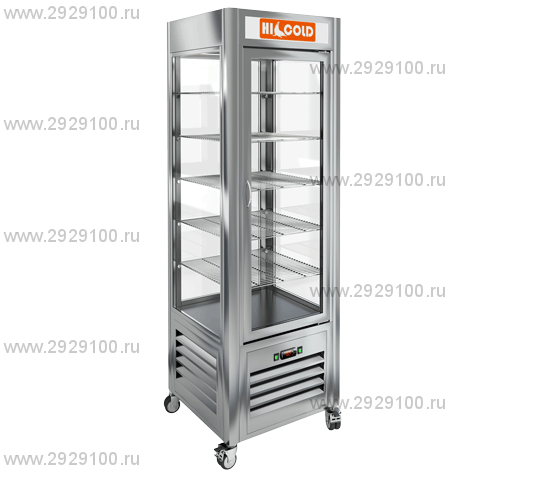 Описание Витрина кондитерская VRC 350 I вертикальнаяВертикальная кондитерская витрина HiCold VRC 350 I поможет красиво показать и сохранить вкусовые качества ваших десертов, тортов и других кондитерских изделий. Кондитерский шкаф изготовлен с остеклением со всех сторон, внутренней подсветкой, Кондитерская шкаф-витрина покажет покупателю кондитерские изделия в лучшем свете и сохранит их свежий и привлекательный вид. Подсветка фриза, Полезный объём витрины 350 л Витрина выполнена полностью из нержавеющей стали марки AISI 430, 5 полок (535х535мм) Характеристики Витрина кондитерская VRC 350 I вертикальная