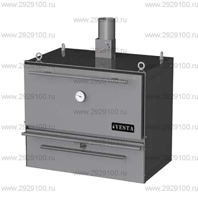Гриль-печь на древесном угле Vesta 45 рассчитан на максимальную загрузку угля - 10кг. Потребление угля - от 12 до 16 кг в день. При непрерывном производстве аппарат легко позволит обслуживать заведение с числом посадочных мест не менее 100. Камера выполнена из черной стали повышенной жаростойкости толщиной 6 мм.