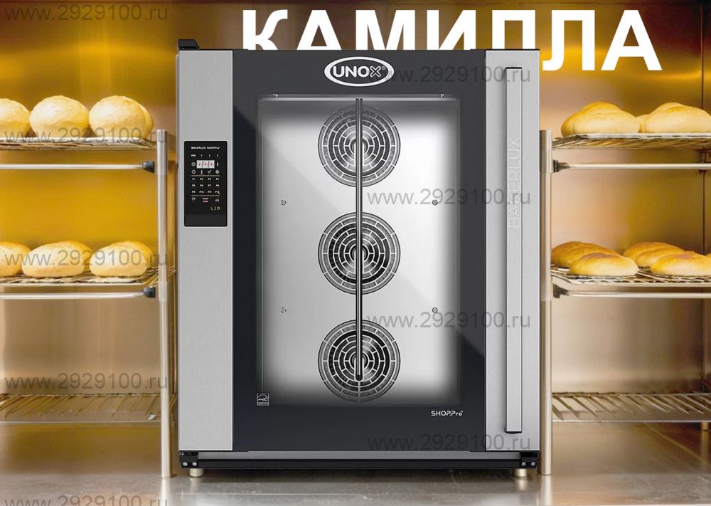 Описание Печь конвекционная Unox Camilla XEFR-10EU-ELRVПрофессиональная электрическая конвекционная печь с пароувлажнением для полного цикла выпечки и допекания в пекарнях, кондитерских и общепите; рассчитана на высокую загрузку и промышленную эксплуатацию. - 10 уровней под противни 600×400 мм — высокая производительность для поточного производства - Температурный диапазон 30–260 °C — конвекция, конвекция с паром, предварительный нагрев - Электронное сенсорное управление — 99 программ (до 3 шагов), быстрый доступ к сохранённым режимам - Пароувлажнение STEAM.Plus 0–100% и отвод влаги DRY.Plus — точный контроль климата в камере - AIR.Plus с 3 реверсивными вентиляторами и двумя скоростями — равномерная выпечка при полной загрузке - Подключение к водопроводу — обязательное условие работы парового режима - Возможность объединения в колонну MAXI.LINK — масштабирование производственной линии - Противни приобретаются отдельно - Страна производства: Италия Характеристики Печь конвекционная Unox Camilla XEFR-10EU-ELRV