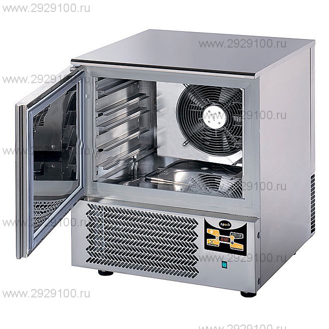 Описание Шкаф шокового охлаждения и заморозки Apach SH 05Небольшой шкаф шокового охлаждения и заморозки Apach SH05 предназначен для работы с 5 стандартными гастроемкостями GN1/1 или пекарскими листами EN (600х400).
